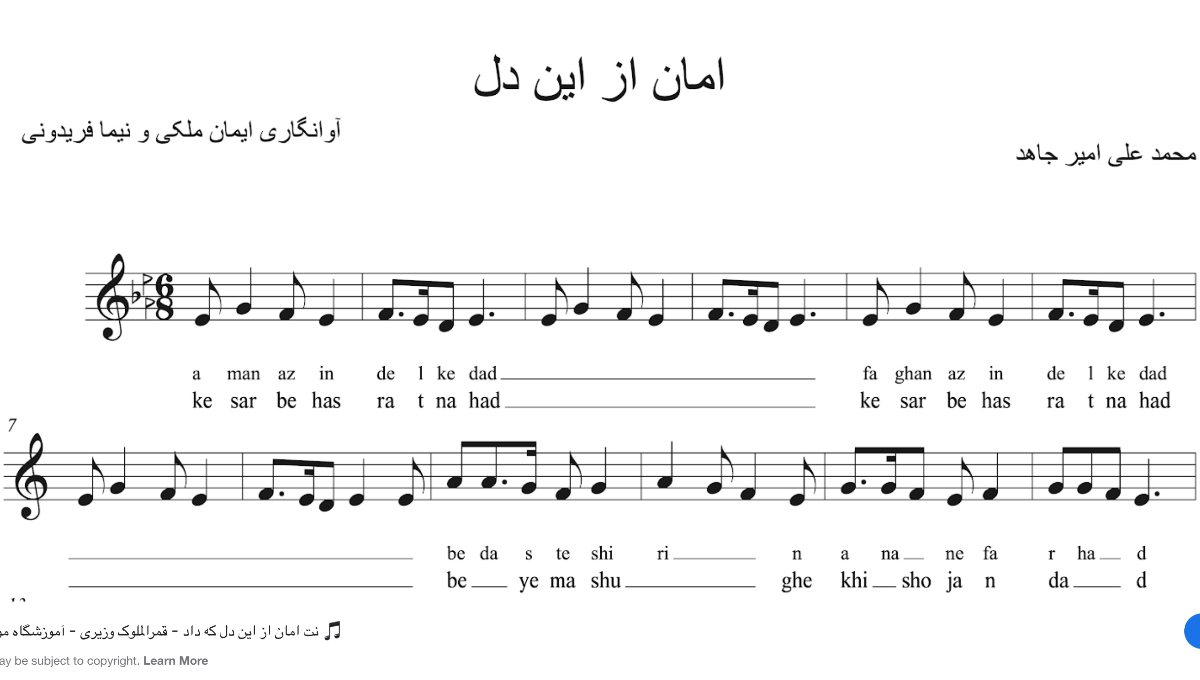 برای آشنایی با دستگاه سه گاه و تمرین تصنیف زیبای « امان از این دل » لطفا به آدرس وبسایت ما در زیر مراجعه بفرمایید
