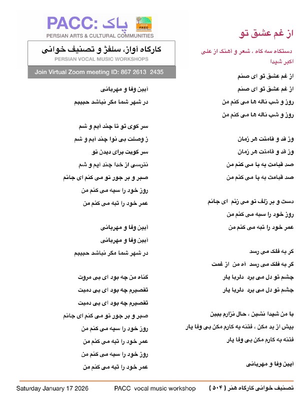 قابل توجه هنرجویان عزیز کارگاه تصنیف خوانی
